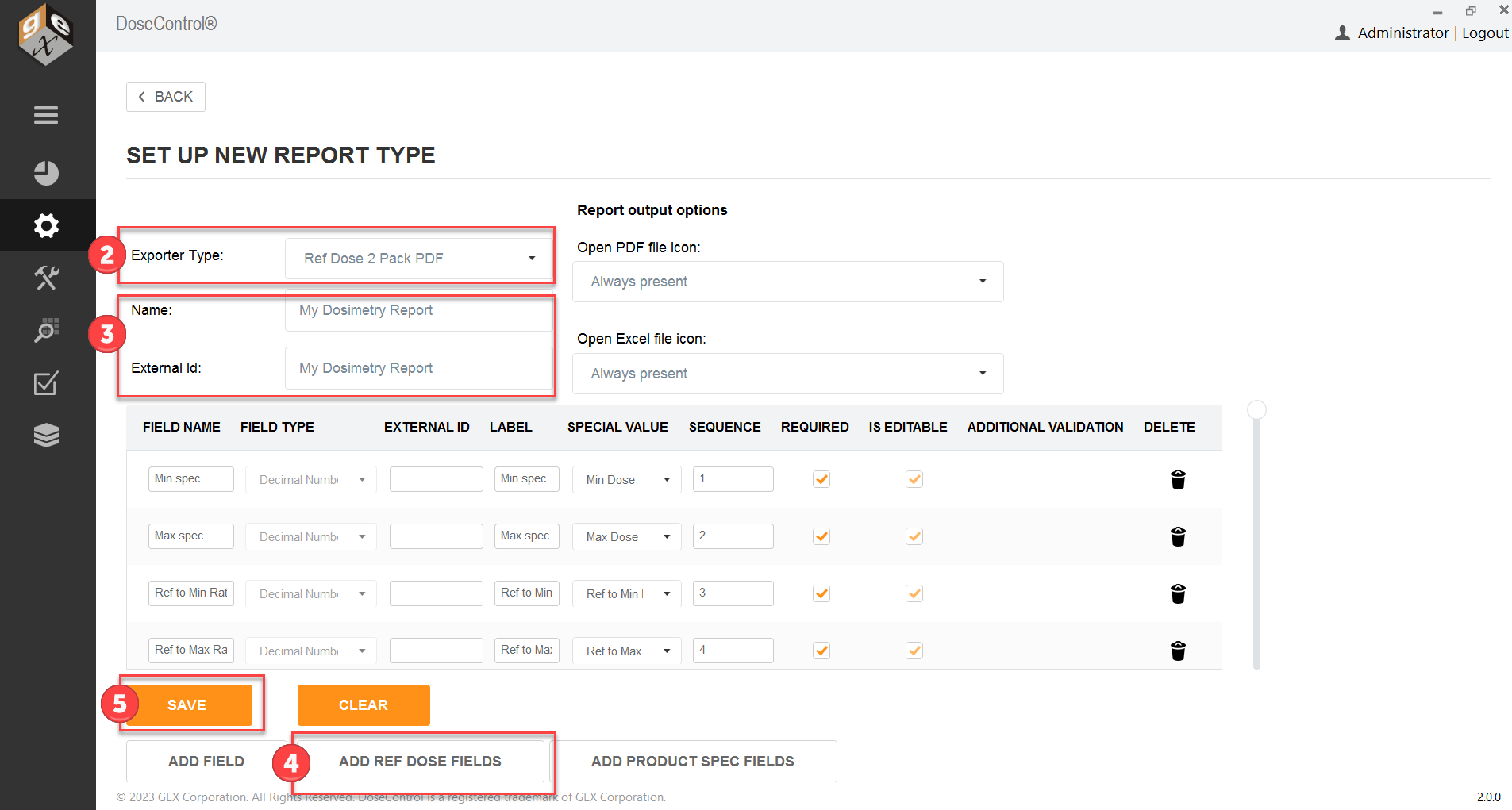 Ref Dose 2 Pack PDF Report Setup
